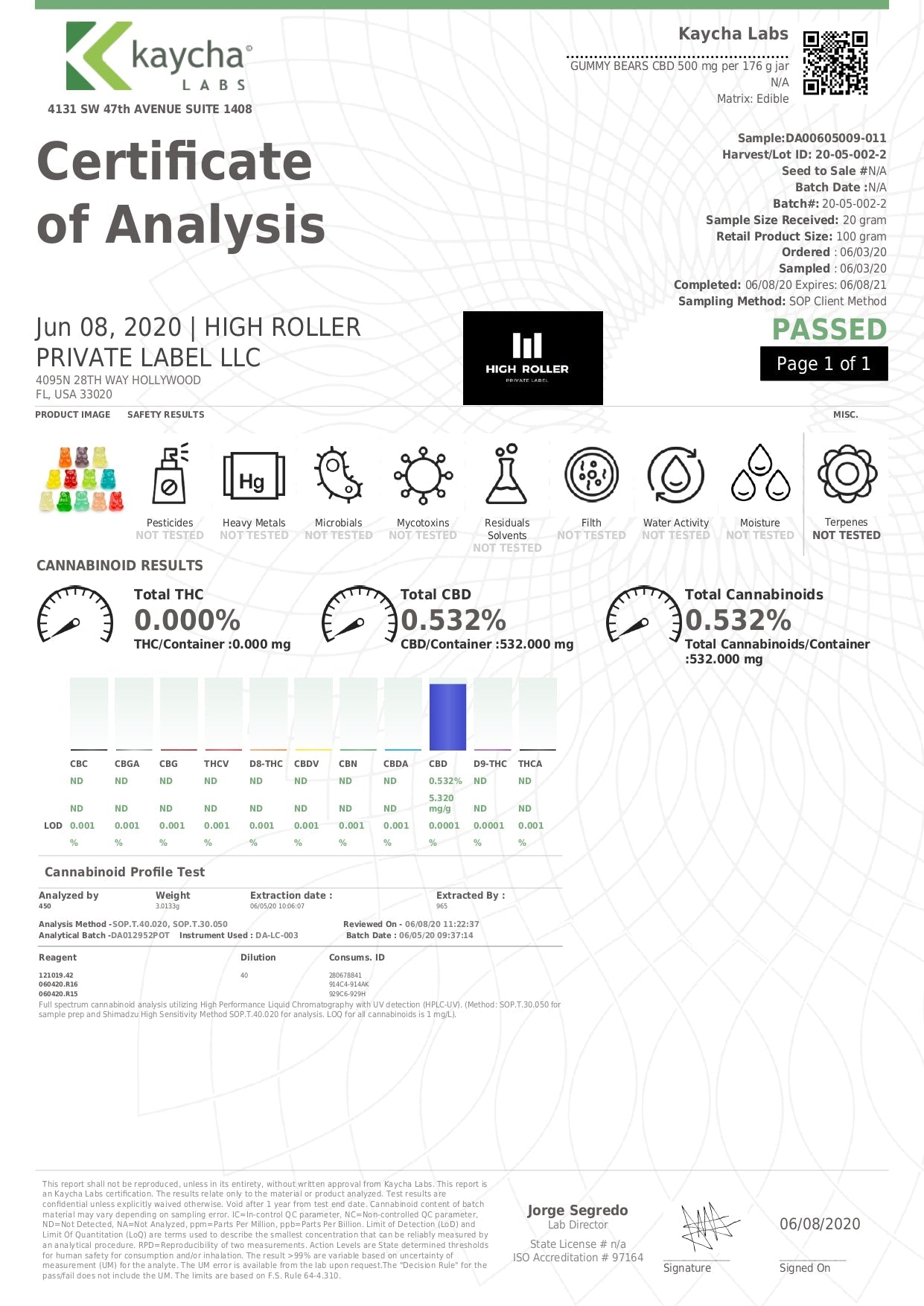 CORN SYRUP (FROM CORN), SUGAR (FROM BEETS), WATER, GELATIN, LACTIC ACID, CITRIC ACID, NATURAL AND ARTIFICIAL FLAVORS, PECTIN (DERIVED FROM FRUIT), FD&C YELLOW #5, FD&C RED #40, FD&C YELLOW #6, FD&C BLUE #1, HEMP EXTRACT CANNABIDIOL (CBD), Coconut oil.